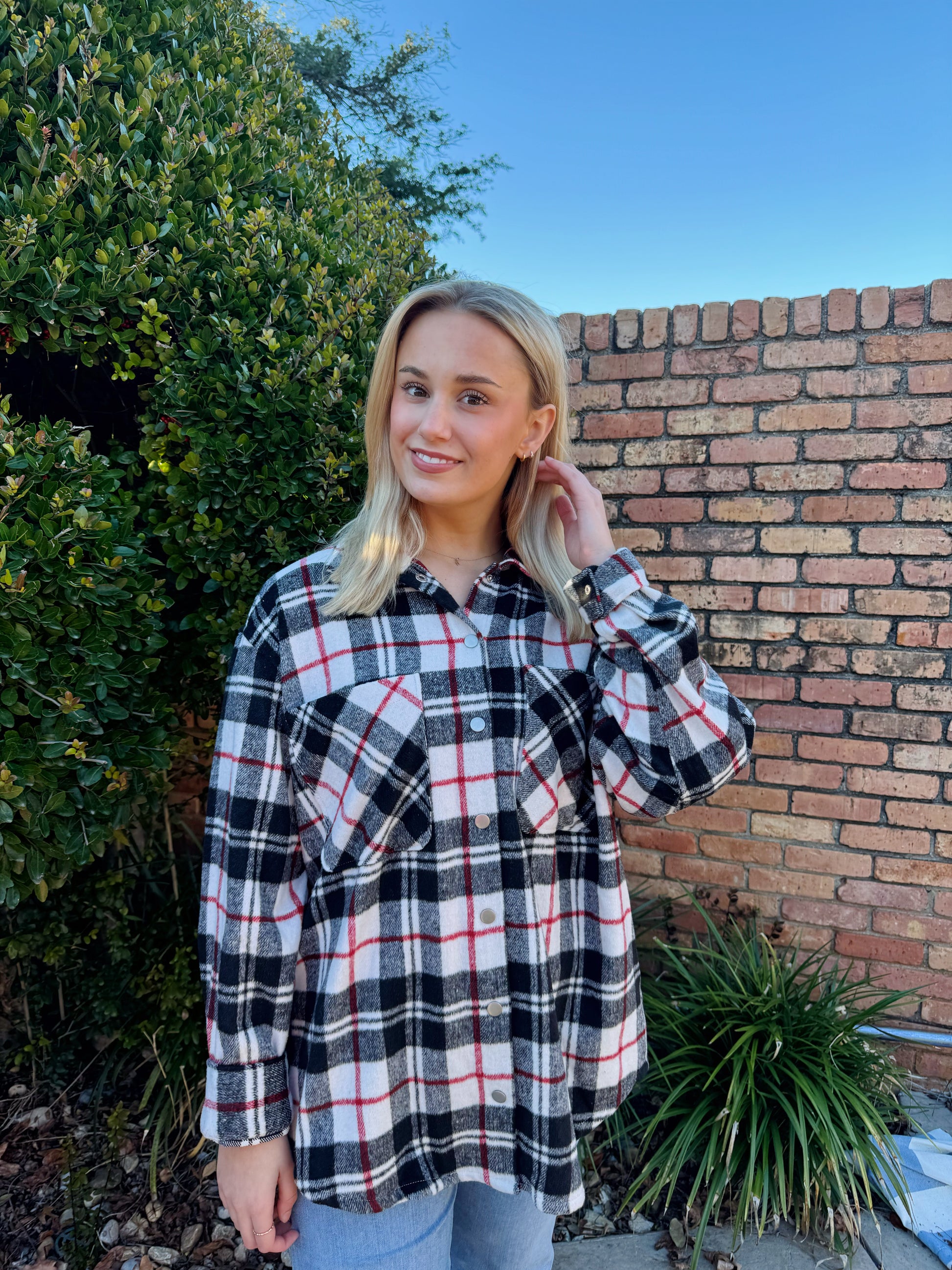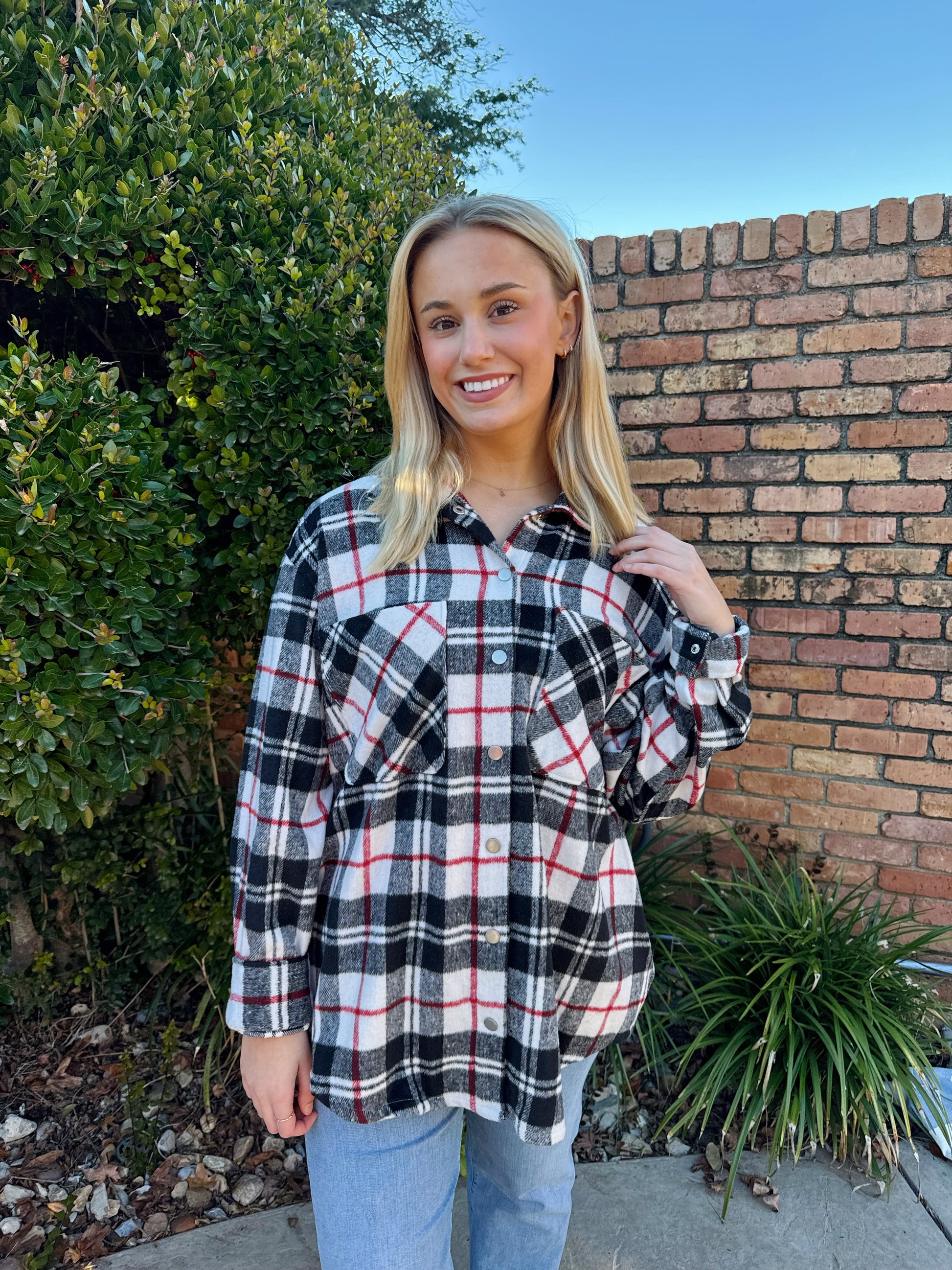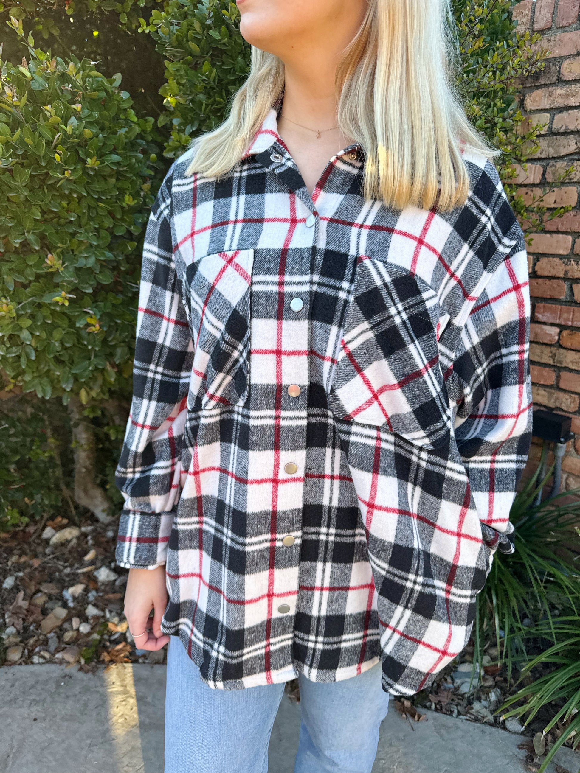 This plaid shacket is a perfect addition for fall/winter! Cute buttoned up (as shown) or paired with a shirt underneath.