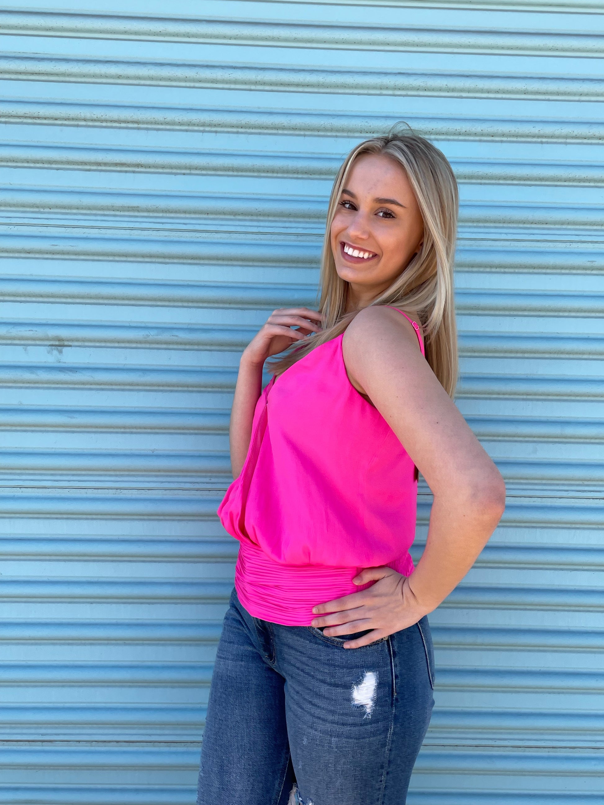 The Pretty in Pink tank top is a fun and bright addition to your closet. Featuring adjustable spaghetti straps.